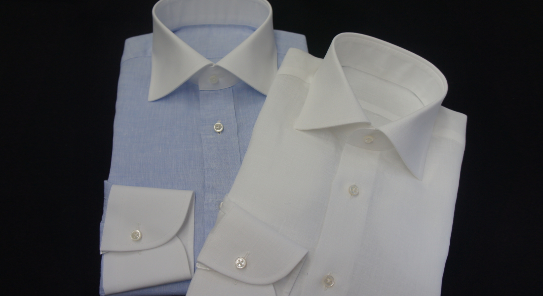 定番の麻100%ホワイトに加え、26SSは、イージーケアのホワイトとサックス無地2色をお取扱いいたします。