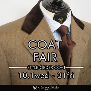 フェア期間中に対象服地にてスタイルオーダーコートをご注文いただきましたお客様へ割引価格にてご提供させて頂きます。