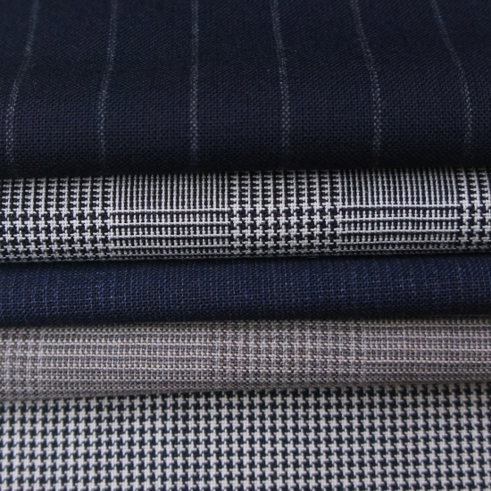 ストライプやヘリンボーン、シャークスキン、グレンチェック、バーズアイなどクラシックな色柄を取り揃えて御座います。