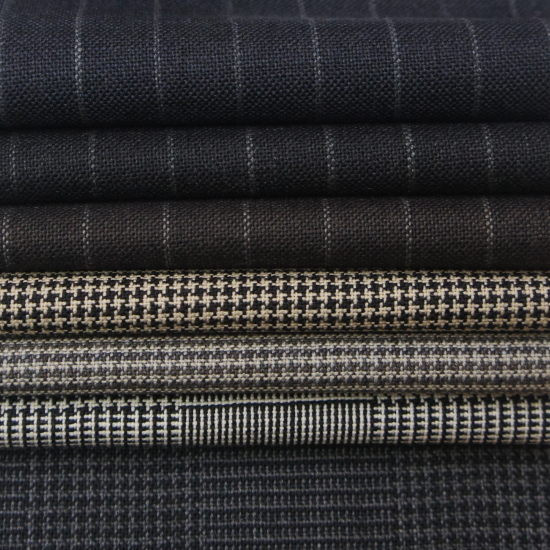 無地、ヘリンボーン柄やストライプなど基本の色柄をおさえた構成で、スーツやジャケット、パンツ単体でもおすすめ服地となっております。