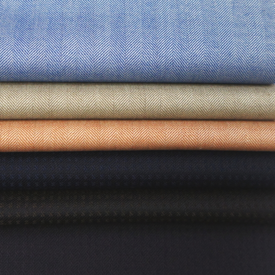 無地、ストライプ、ヘリンボーン、シャークスキン、グレンチェックなど伝統的な定番色柄を収録しております。